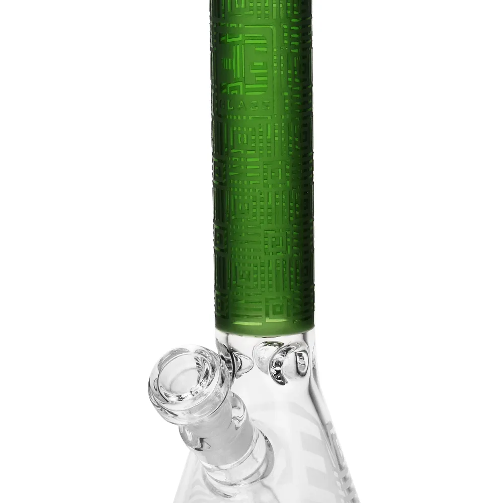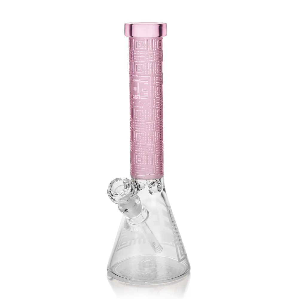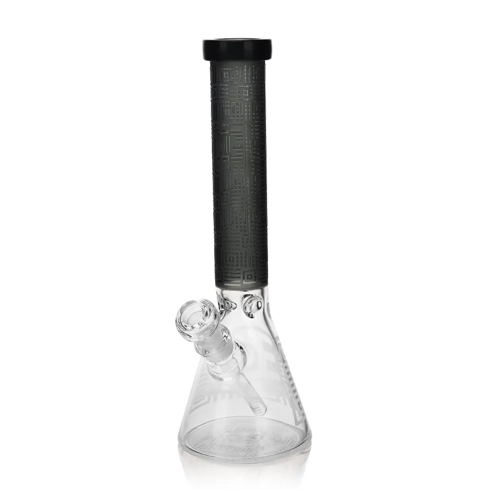 EG sandblasted collection of “Square” design, which is blown from thick 7mm heat-resistant and durable Borosilicate glass. At an optimal height of 14 inches tall with its spacious body, thick base, and unique engraved design, it provides you with plenty of space for your smoke to cool off and be stable enough for most surfaces.